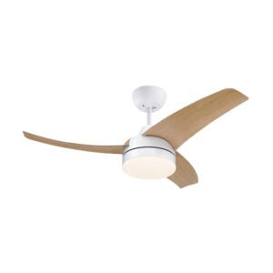 מאוורר תקרה כולל שלט Westinghouse Magnolia 28W "42 – צבע לבן בשילוב אלון שנתיים אחריות ע"י היבואן הרשמי