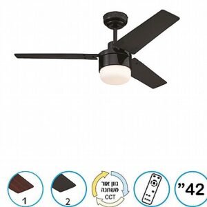 מאוורר תקרה כולל שלט Westinghouse Magnolia 28W "42 – צבע לבן בשילוב אלון שנתיים אחריות ע"י היבואן הרשמי