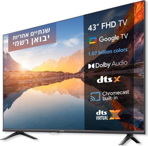 – FHD בגודל 43 אינצ' לחוויית צפייה מושלמת וללא שוליים רזולוציית FHD 1920×1080 ומרחב צבעים גדול לחוויה חדה, מציאותית ועשירה בצבעיםמערכת הפעלה Google TV עם תמיכה מלאה בעבריתתוכלו להנות מחוויית תוכן אינסופית מותאמת אישית ויישומים מותקנים כגון: נטפליקס, Prime Video, יוטיוב.באמצעות חנות האפליקציות של גוגל תוכלו להוריד אלפי אפליקציות, שירותי תוכן, מוזיקה ומשחקים. העוזרת האישית של גוגל, ממשק בית חכם, CHROMCAST מובנה ותמיכה ב MIRACASTחווית סאונד מושלמת