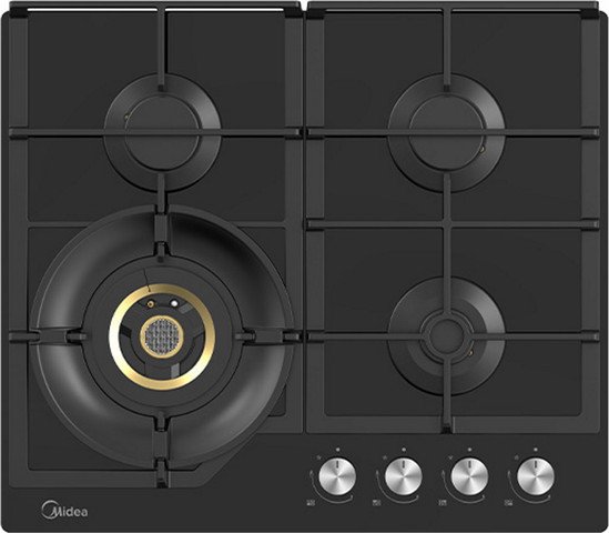 – 4 להבות Midea דגם MG60GH096KT6BIRמאפיינים:כיריים גז ברוחב 60 ס"מ עם משטח זכוכית שחורה מחוסמת.מבער נחושת טורבו וולקנו 2.0 מקצועי לטיגון ובישול בעוצמה גבוהה מאוד.4 מבערי גז