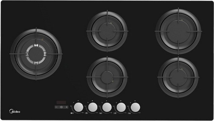 כיריים גז 5 להבות – 90 ס"מ Midea מידאה 90GH503 זכוכית שחורה
